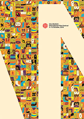 The official poster for the 23rd Busan International Film Festival is derived from Hwang Young-Sung’s original painting ‘Family Story.’ Hwang Yung-sung is the master of Korean abstract paintings who associates Western abstract paintings with a Korean countryside sentiment that he uses to develop his unique artworks. He combines various Korean-based resources such as figures and objects in nature as well as languages and signs to repeatedly and concisely depict an unconstrained and bold sentiment.