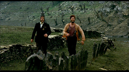Through the two dumb-witted brothers, this comedy pokes fun at ideology and war. It follows the perspective of two adults who fully retain their childhood memories, thus making it seem like a fairy tale. Take for instance, Mijail continues to love Mushka the cow, and Feodor continues to hold on to Loli, his first love. Meanwhile, their past is presented through an animation scene in the beginning and recollection scenes throughout. The robust music carries the rhythm and flair of the whole movie. The hilarious speculations by the German and US armies, and subsequent events criticize war and points a finger at the Franco Spanish. It is the first feature from a director full of personality and promise. (RHEE Souewon)