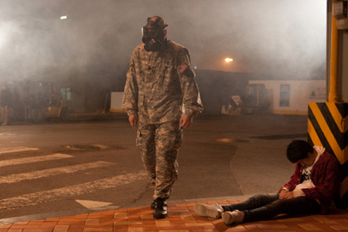 Centering on the emergence of a serial killer, [Anti Gas Skin] follows the reaction of people who worry about the killer in political, religious and individual ways. As the substance of their anxiety is unknown, the fear spreads and society becomes chaotic and then the film reveals how the mask of power can allay this chaotic situation in a satiric fashion. (LEE Sang-yong)