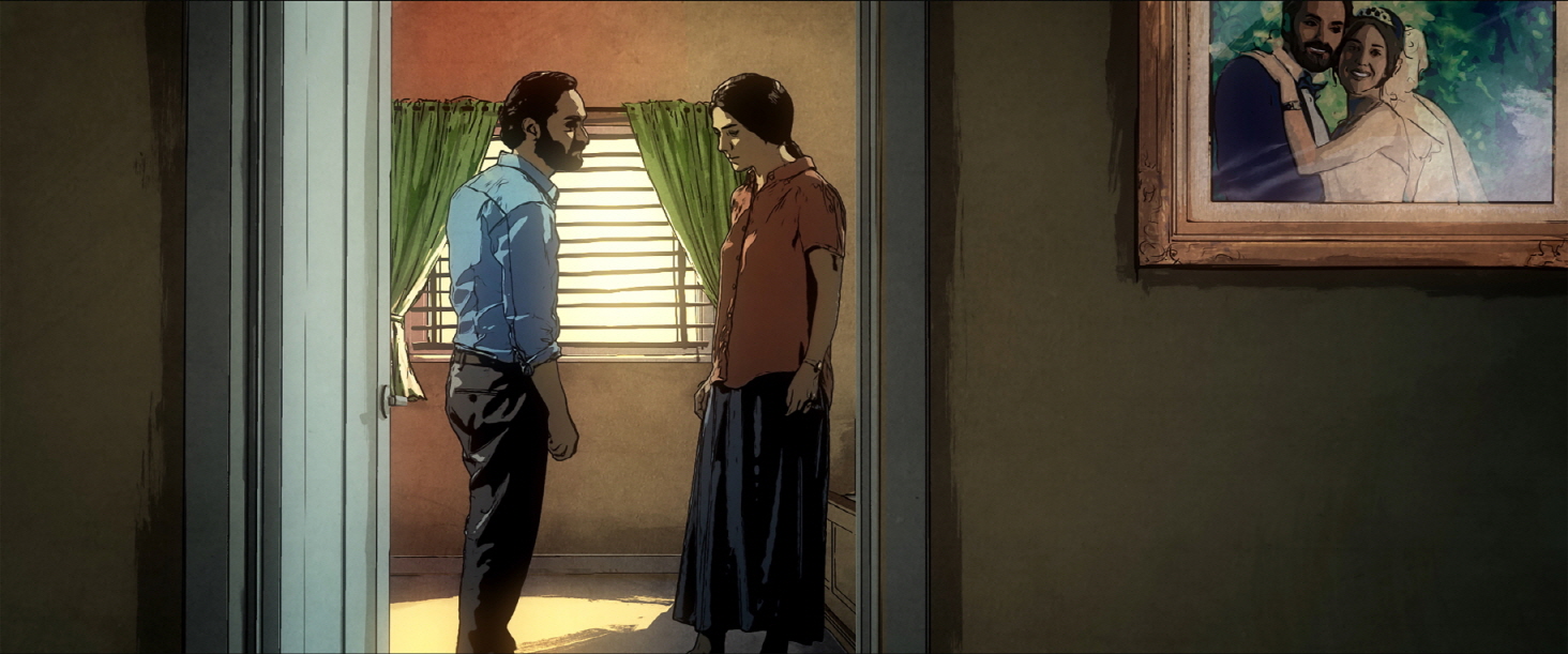 Set in Tehran at night, this animation about damaged people illustrates how dark the world can look when strict religious morals and social regulations are imposed. The characters were created through rotoscoping technique. Hence the film captures shocking images rarely seen in Iranian films. A sex worker takes her hearing impaired son to work. She is preparing to divorce her drug addict husband. A pregnant woman tries to get a job without her husband’s permission. A young bride-to-be has a one-night stand with a musician. While the film follows the strand of each woman’s story, they are also intertwined. Tehran Taboo portrays these women as victims of socially stringent Iran, whatever they are. Their sad stories and struggles to challenge everyday taboos shine through in this stylish animation created in flamboyant colors and modern sound. Tehran Taboo was written and directed by Ali Soozandeh, an Iranian working in Germany. (JEONG Minah)