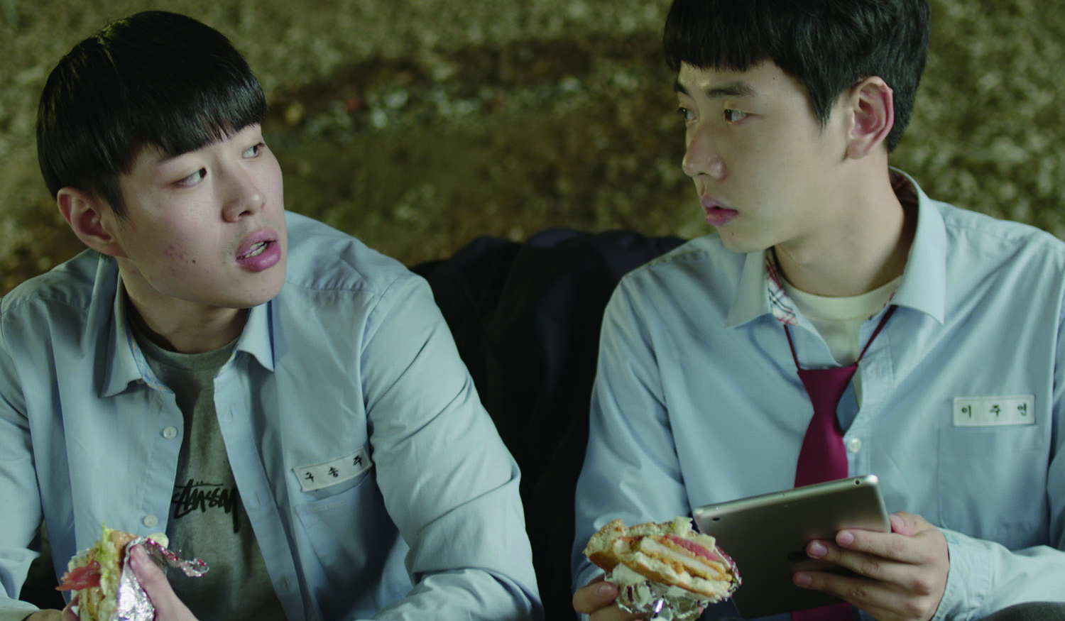 During a high school music exam to assess the singing abilities of students, Songju shows off his rapping skills despite the blackboard in the background stating that pop and rap songs are not allowed. The teacher gives him an F on the test without saying anything. In the meantime, on one side of the classroom, Juyeon looks happy, watching Songju rap. He loves hip-hop as much as Songju does although these two come from completely different backgrounds. Songju is a troubled student living in a multi-house home in a less developed area while Juyeon is an exemplary student living in a fancy apartment in a rich village. Despite differences in grade, personality, and background, they decide to form a hip-hop duo called LIMECRIME. Based on the true stories of the co-directors, this film effectively mixes two different film genres: coming-of-age and music film. One thing for sure is that the scenes where LIMECIME raps are super exciting. (JUNG Hanseok)