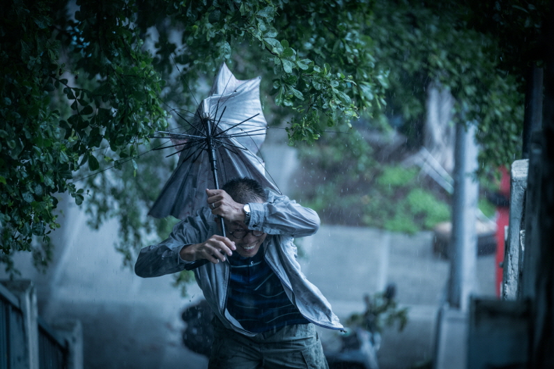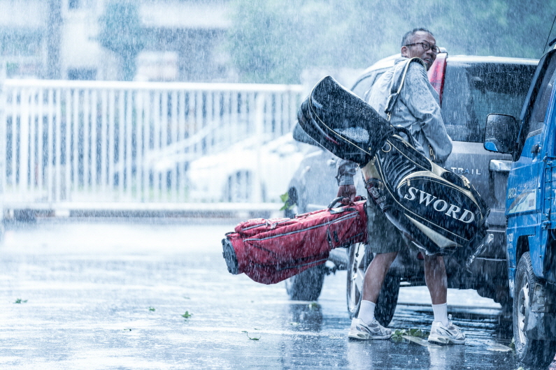 A middle-aged man about to be divorced stops by home to pick up his golf bag. He leaves with the key. A typhoon arrives and blows torrential rain through the windows he has left open. (PARK Sungho)