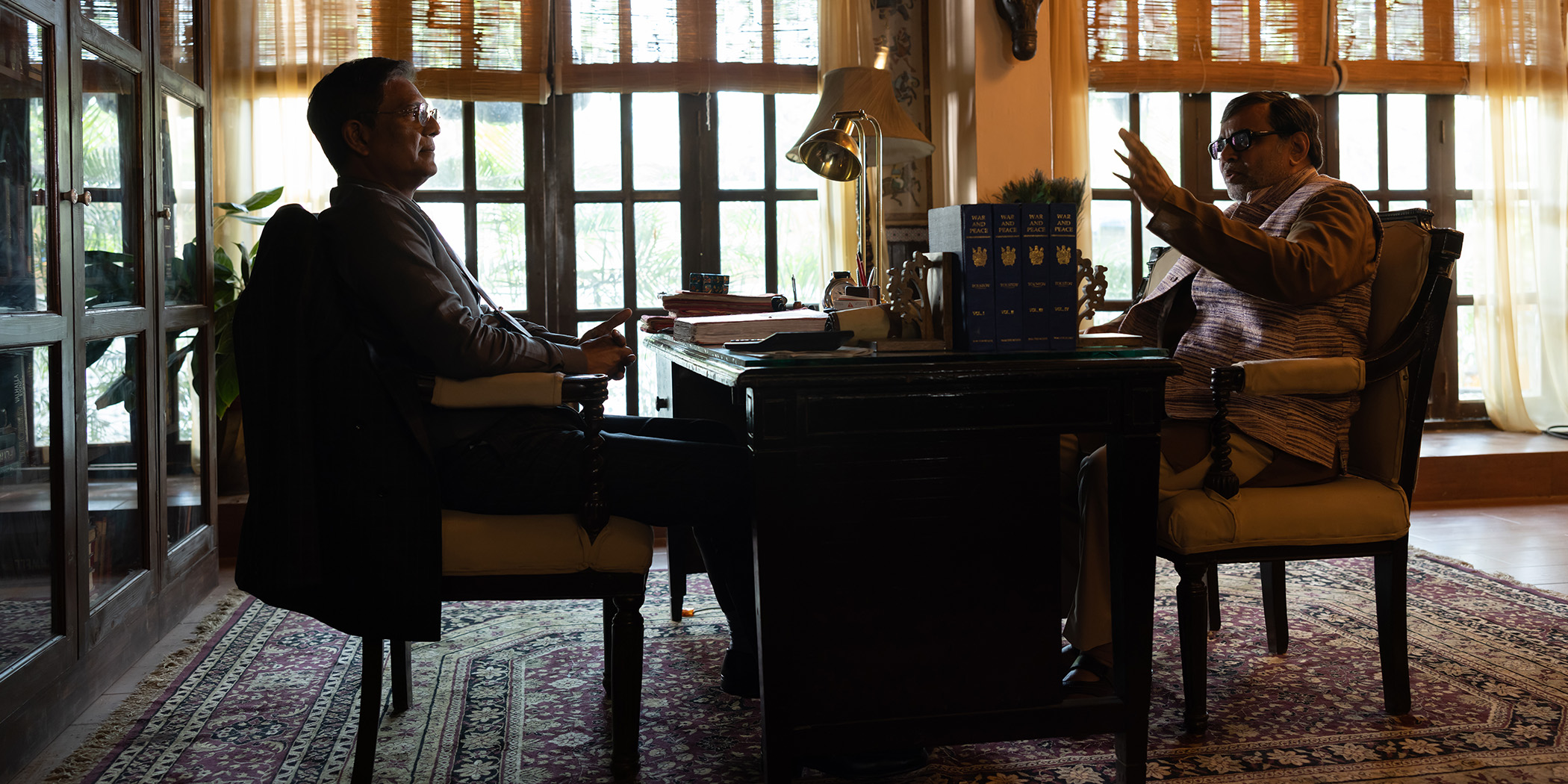 After decades of working in the printing industry in Kolkata in eastern India, Tarini has reached retirement age. He spends his days at home, having declined his son’s invitation to come to the United States. Then a friend shows him a help-wanted ad. Although he has never published a book, Tarini used to tell made-up stories to his friends in his youth, and the ad for a storyteller in Ahmedabad in western India piques his interest. The employer turns out to be a businessman with great wealth who is suffering from incurable insomnia. Tarini stays at the man’s home and tells him stories every night, and the man’s insomnia seems to improve. However, their relationship unfolds into another story with a twist. Inspired by the character “Uncle Tarini,” who appears in short stories written by the great Indian filmmaker Satyajit Ray. (PARK Sungho)