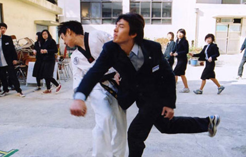 The Taekwondo Club of Manse High school once enjoyed a great reputation. But with its decline, it now faces the threat of extinction. The national tournament is coming up, but all the members are injured due to a big fight with fellow schoolmates. And to make matters worse, a competent coach has left the club. The worried principal comes up with an idea. He proposes to Yong-gaek and his friends, who beat up the club members, that if they join the club and get through the preliminary round, they would be exempt from being expelled from school. They join the club, which recently hired a new coach from a nearby Taekwondo hall. Choong-geun, the new coach, is completely incompetent and the boys are not really into learning Taekwondo at all. Spin Kick has a rather predictable storyline. The deliquents get into all kinds of trouble. And as their dedicated friends come to their rescue, the boys gradually find healthy energy within them. They overcome their internal discord and eventually win the tournament. Although the film has a rather conventional storyline and flat action scenes, the direction devoid of pretense is strangely moving.