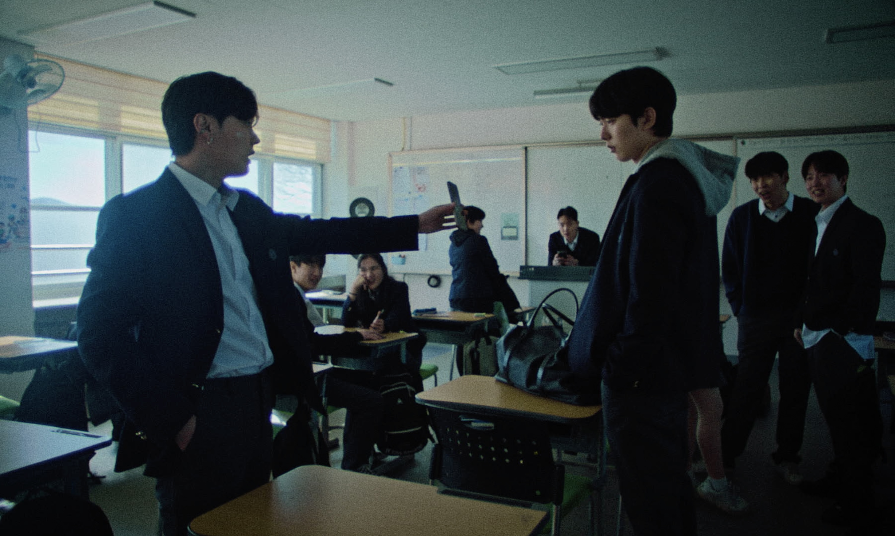 The enigmatic debut feature by Han Chang-lok takes its original title, Chung Chung Chung, or Funky Freaky Freaks when translated in English, from the first syllables of three chapter headings that appear midway through the film: ‘Chung-dong’ (impluse), ‘Chung-dol’ (collision), and ‘Chung-gyeok’ (shock). Ji-sook, a high school girl with her own troubles; her boyfriend Yong-gi, who believes that, “protecting this girl is the same as saving the world”; and their friend Dum-bo, hang out together, wriggling about like the caterpillars in the opening scene. However, problems arise when ‘pretty boy’ Woo-joo transfers to their school and Ji-sook falls for him at first sight. From such a setup, one might expect a bundle of cliches, but the story you’re anticipating ends much earlier than you think. The exuberant camera never sits still, fragmenting scenes into image bursts that play out like an MTV collage. Over this spectacle of colors, which seem almost painted over in post-production, a drum and bass soundtrack throbs like the protagonists′ racing hearts. Caught in a cycle of love and betrayal, everyone is at a loss, yet no one would dare call it a cliche pop song lyric. The comical beginning hurtles toward a downfall far more tragically brutal than you can imagine. (JUNG Sung-il)