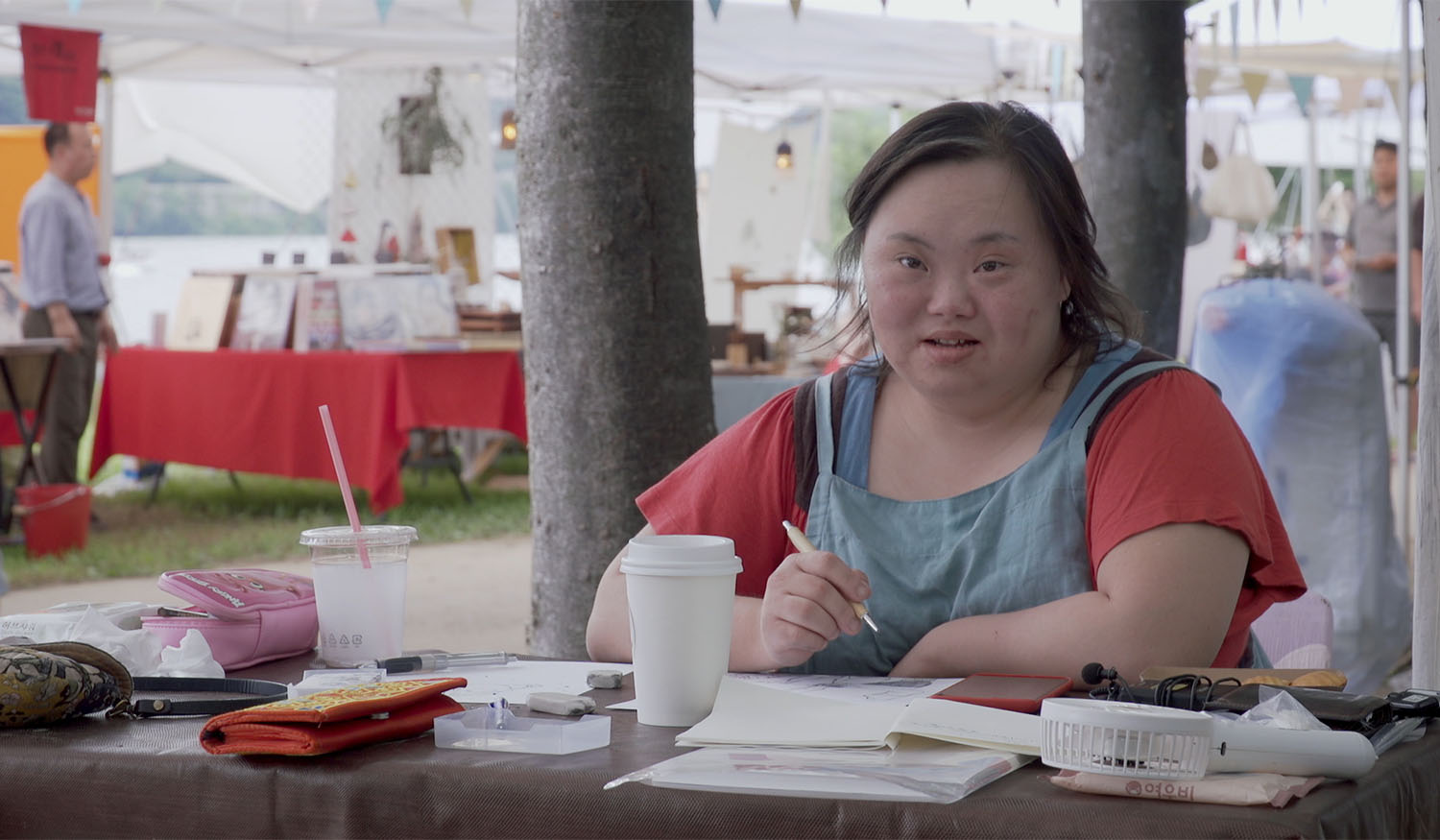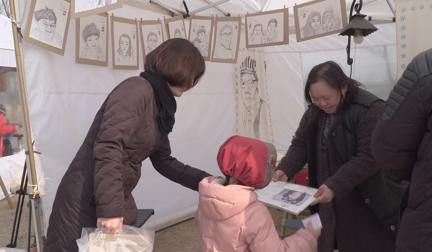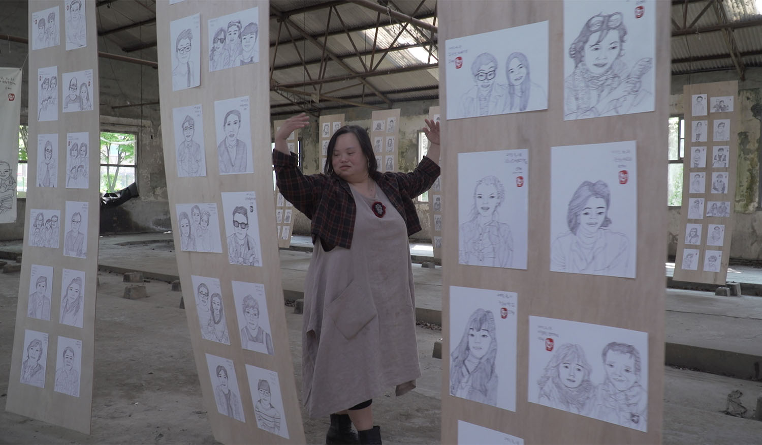 양평의 문호리 프리마켓에서 사람들의 캐리커처를 그려주는 은혜씨. 그녀에게는 발달장애(다운증후군)가 있지만 그건 열정적인 ‘니얼굴’ 작가에겐 큰 영향을 미치지 못한다. 은혜씨는 차가운 날씨 속에서도 손이 트도록 캐리커처를 그리며 자신만의 시선으로 이천 명이 넘는 사람들의 얼굴을 작품에 담아 온 근면한 작가다. 그리고 <니얼굴>은, 은혜씨와 닮은 방식으로 그녀의 하루하루를 응시하는 영화다. 때로는 변덕도 부리고 흥도 많은 은혜씨의 일상과 열성적인 작품 활동을 영화는 가감 없이 담고 있으며, <작은여자 큰여자 그 사이에 낀 남자>에서도 자신의 가족 이야기를 비췄던 서동일 감독은 친밀하고 존중어린 시선으로 성인이 된 은혜씨와 가족들의 모습을 바라보며 세밀한 초상화를 그려낸다. (홍은미)
